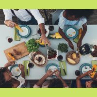 • Promote a positive mealtime environment where teachers model healthy eating behaviors, discuss and explore food with a positive and enthusiastic approach, and teach age-appropriate mealtime manners and skills.